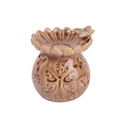 IRIS kerámia olajmécses, lepke mintás, lepkével, világos barna 10 cm