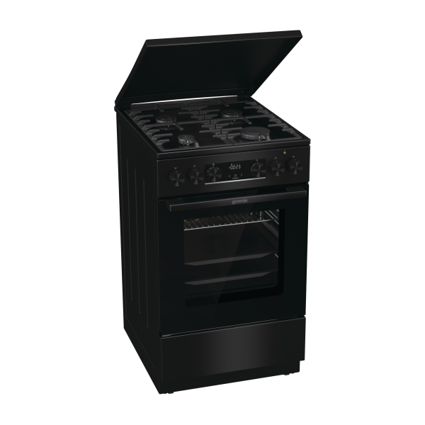 Kamra űrtartalma: 70l, HomeMadePlus kemence formájú sütőkamra, Méretek: (Ma x Szé x Mé): 85/50/59,4 cm, "A" energiaosztály, max. hőmérséklet 275°C, 4 gázégő, elektromos multifunkciós sütő ExtraSteam gőzfunkcióval, gyors felfűtés, Frozen Bake - fagyasztott termékek sütése, Pizza, AirFry funkció stb., GentleClose lassú ajtózáródás, AquaClean öntisztítás, Timer - beállítható sütési idő, tekerő- és érintőgombokkal vezérelhető sütő, SilverMatte zománc, egykezes elektromos szikragyújtás, TELESZKÓPOS SÜTŐSÍN - egy szintes, öntöttvas edénytartó rács, sütőrács, mély- és lapos tepsi, fém tető, festett fekete szín