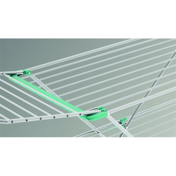 Double Ruhaszárító - Az alumíniumból készült Double ruhaszárító erős és széles szárítószálakkal rendelkezik, amelyek 30 méternyi szárítófelületet biztosítanak. Stabil és időtálló, 14 kg kapacitással. Nyitott méretei: 174 x 132 x 56 cm, zárt méretei: 55 x 135 x 6 cm, súlya 2,10 kg. Könnyen tárolható, mivel kompakt méretűre csukható össze. Ideális választás azoknak, akik hatékony és tartós szárítót keresnek.